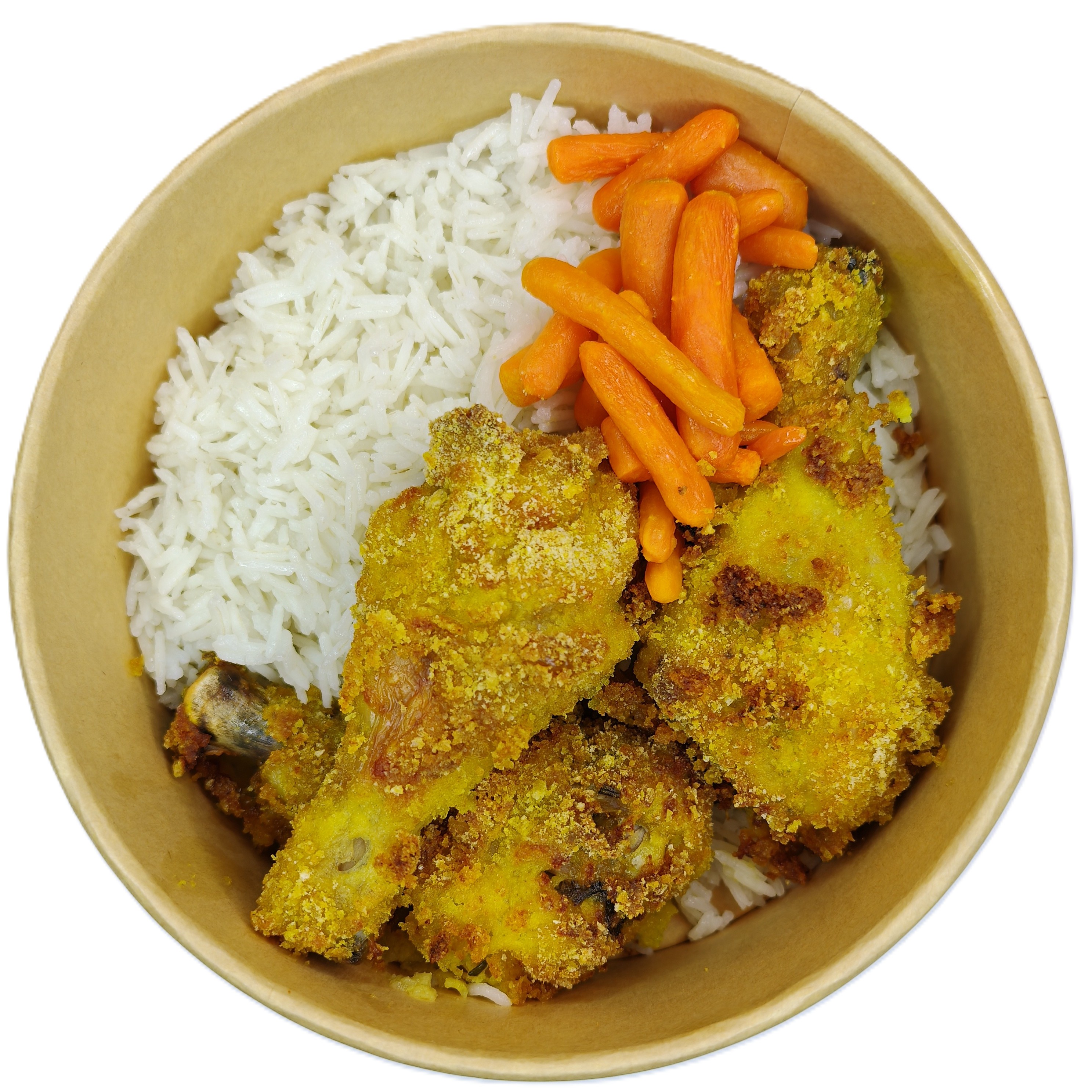 riso basmati, pollo, carote, zucchine, piselli.