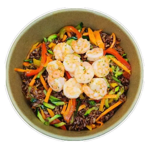 Basmati, Uova, Prosciutto Cotto, Piselli, Porro, salsa soia.
