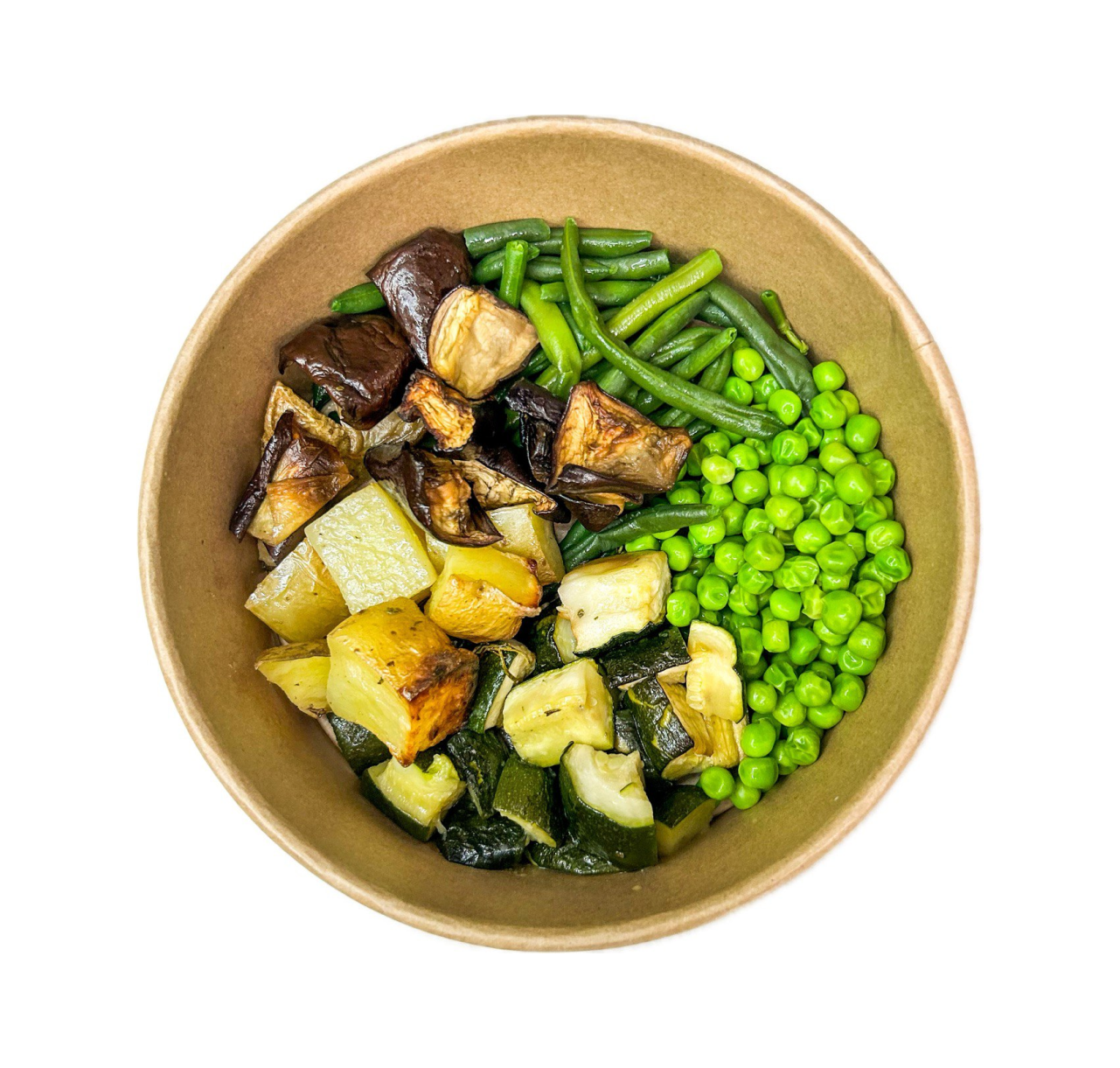 Zucchine, melanzane, patate, piselli, fagiolini.
